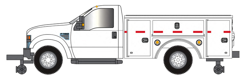 The versatile design of the Ford F series pickups enabled a wide variety of specialized arrangements, with single-cab, extendedcab and crew-cabs coupled with different bed lengths and types. Utility backs consisting of built-in storage units and trade specific equipment were available from aftermarket suppliers such as Knapheide and Reading, and the railroads were quick to also add Hi-Rail gear for use by their track gangs, signal crews and inspectors.